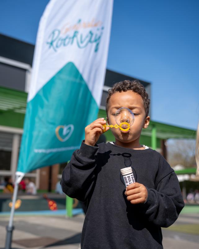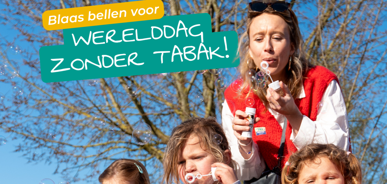 Voor de Werelddag zonder Tabak roepen we mensen op om hun terrein rookvrij te maken en dit in de kijker te zetten door bellen te blazen!